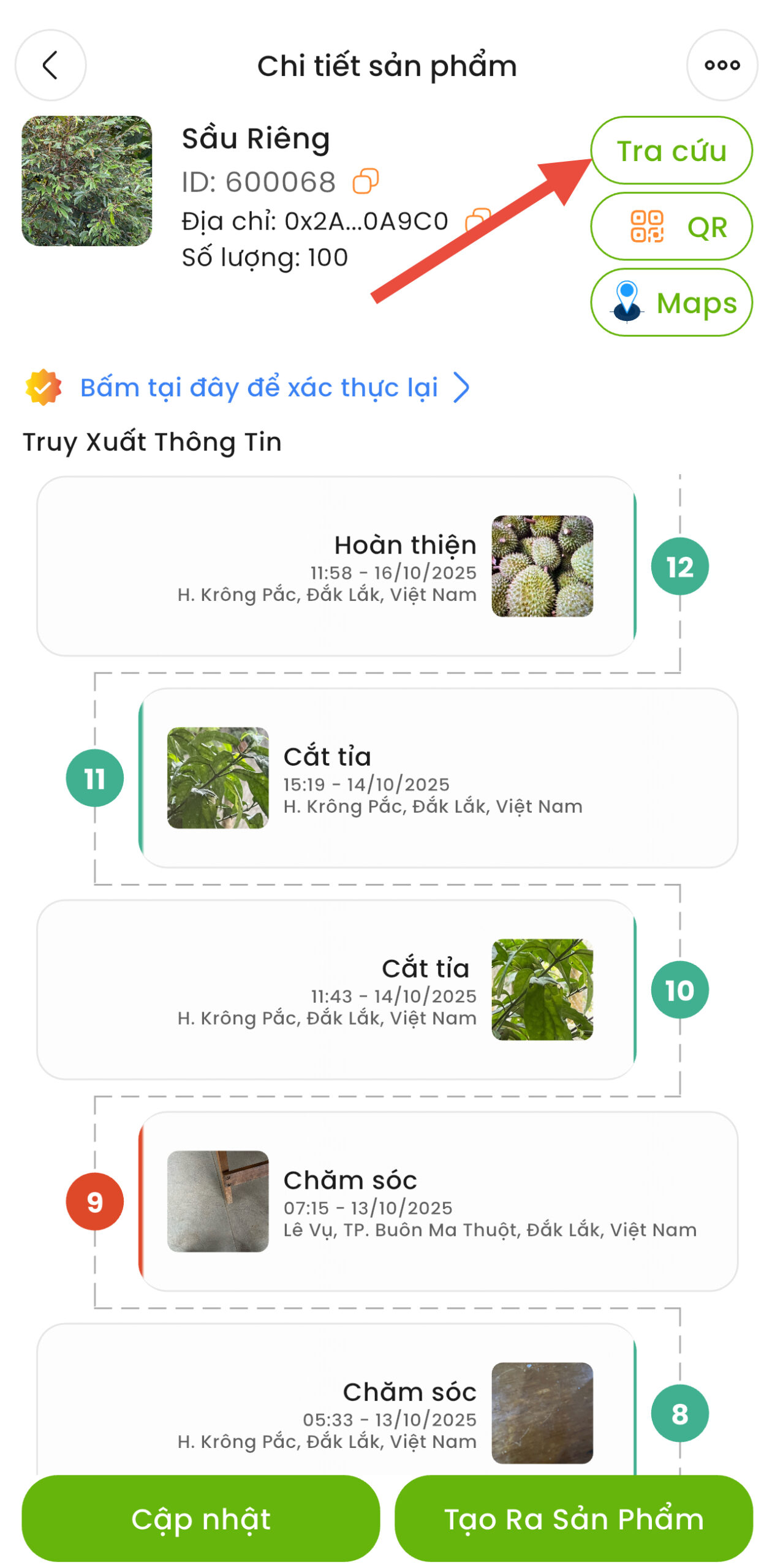 Nhấn nút “Tra cứu” trên màn hình thông tin sản phẩm
